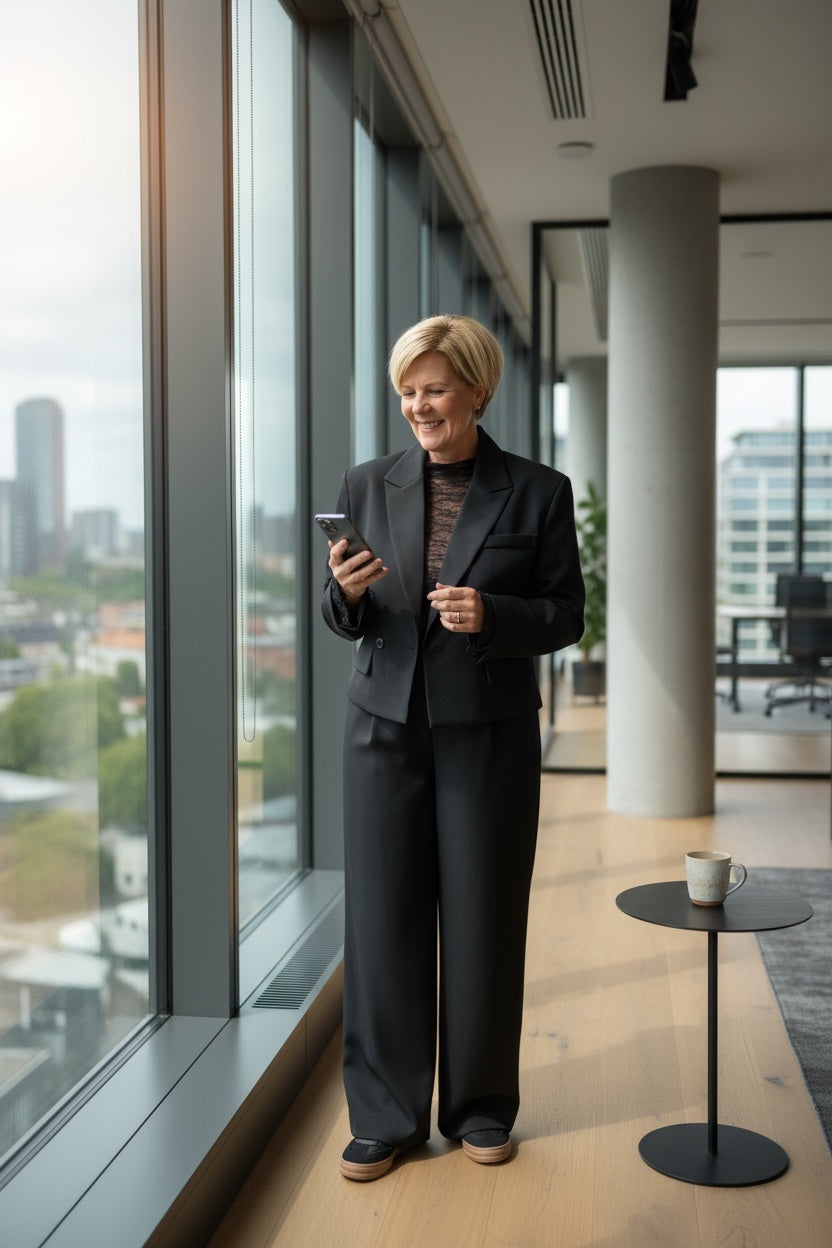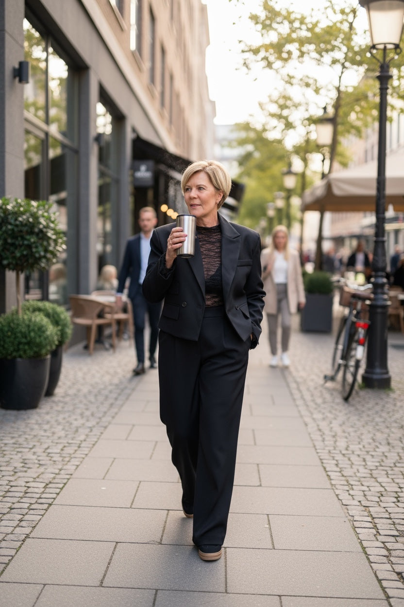 Super toch deze cropped blazer!! Je kunt dit zowel chique als stoer dragen! Draag de blazer op een stoere jeans en je kunt lekker een dagje gaan shoppen.  Combineer hem met de bijpassende pantalon met wijde pijpen en plooien en je hebt een geweldig pak! Leuke kanten top, blouse of T-shirt eronder en je kunt op pad!! Ook verkrijgbaar in bruin.