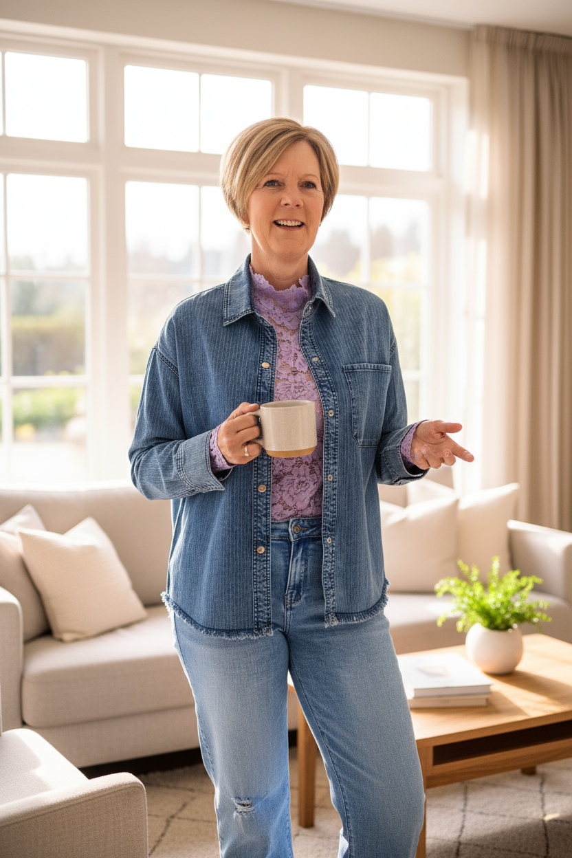 Draag jij ook graag een denim blouse?  Zeker in deze tijd van het jaar, kan deze prachtige denim blouse met lichte krijtstreep niet ontbreken in jouw garderobe. Je kunt de blouse zowel gesloten als open dragen. Verkrijgbaar in de maten S/M en L/XL.