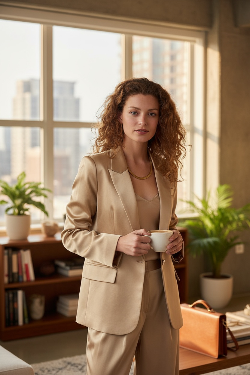 Deze prachtige satijn-look blazer is gevoerd en heeft schoudervullingen en paspelzakken. Mooi om op een jeans te dragen maar ook heel geweldig in combinatie met een pantalon om laather-look rok.