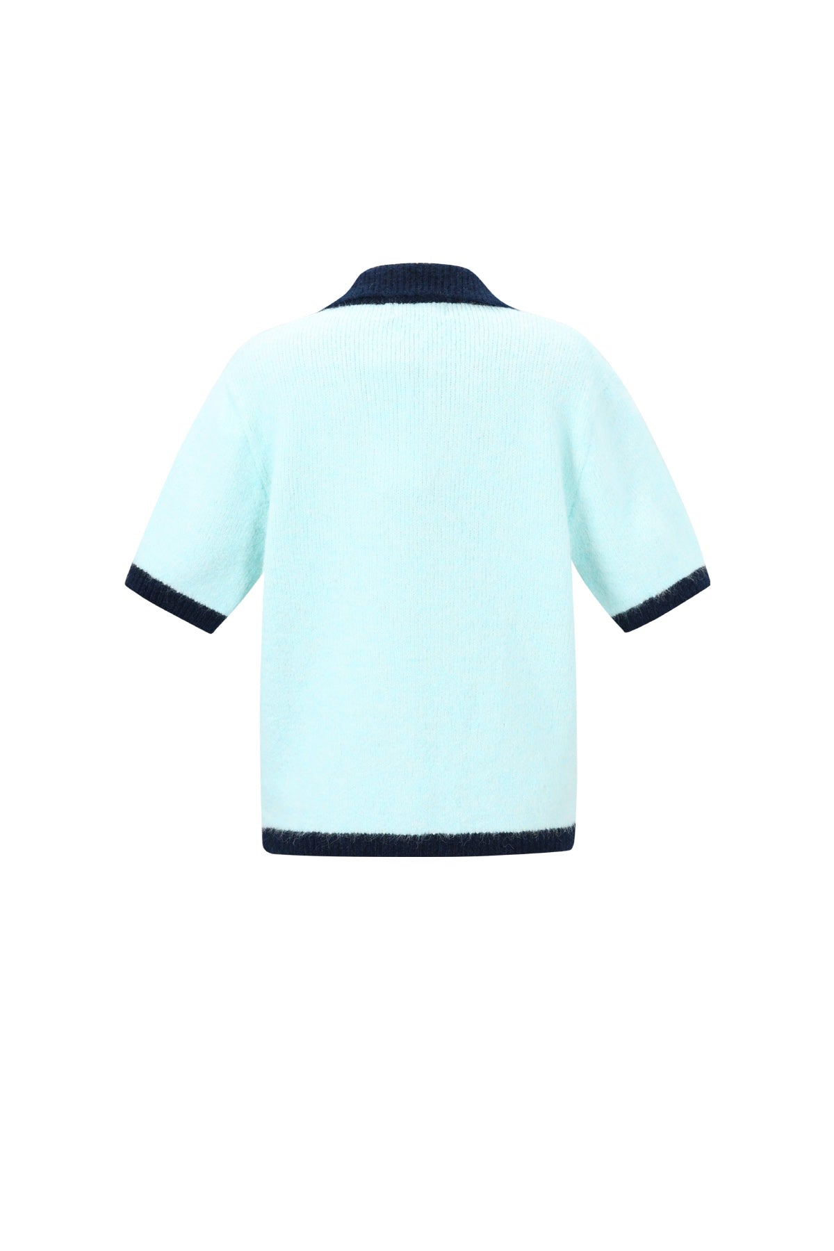 Gebreid vest met korte mouw en gekleurde bies in lichtblauw/donkerblauw