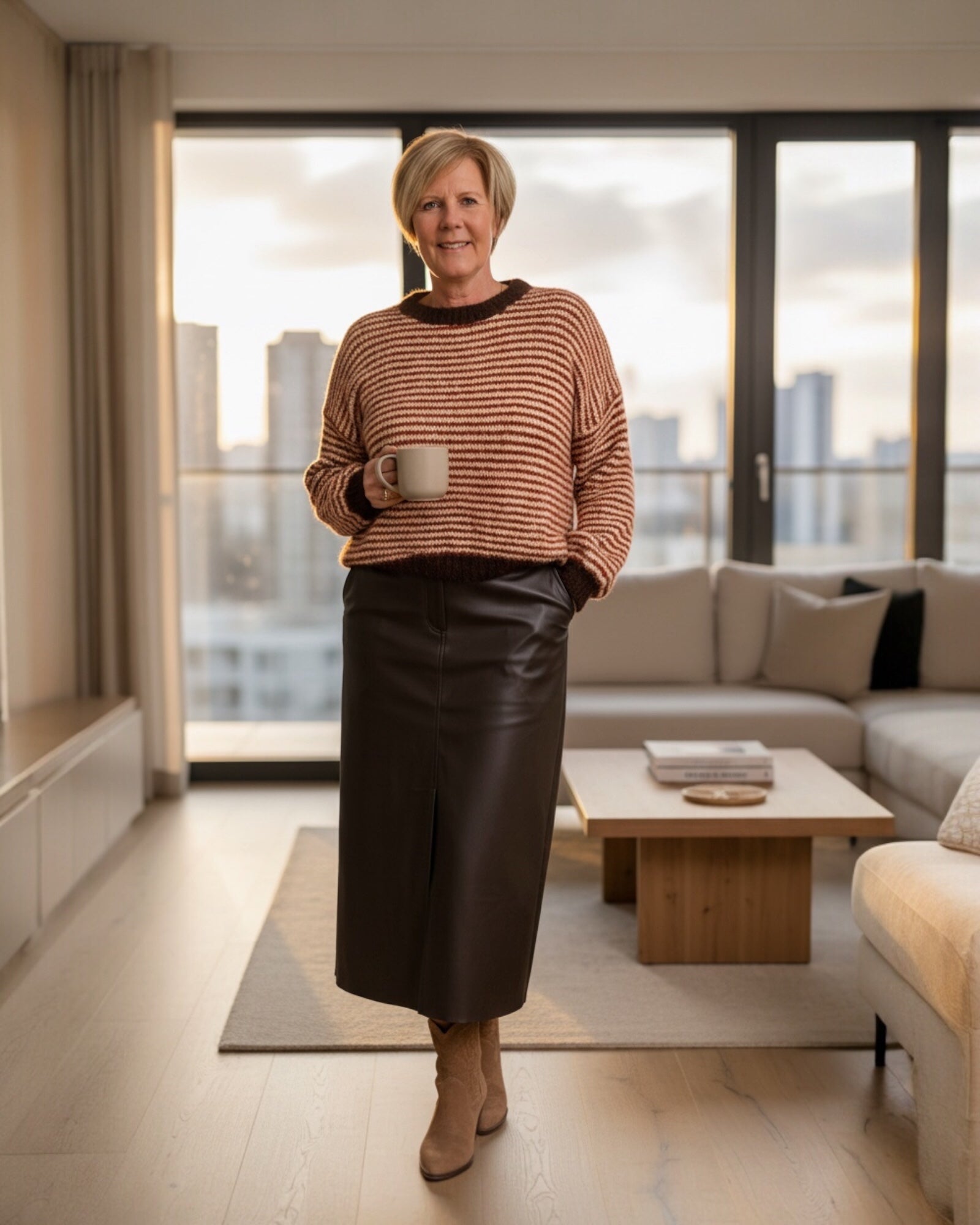 Deze geweldige gebreide trui brengt warmte in jouw garderobe. De mix van chocoladebruin, bordeauxrood en geel creëert een opvallend maar toch elegant kleurenpalet dat elke outfit net dát beetje extra geeft. De tijdloze pasvorm zorgt ervoor dat je dit item moeiteloos combineert met jouw favoriete jeans, rok en pantalon.